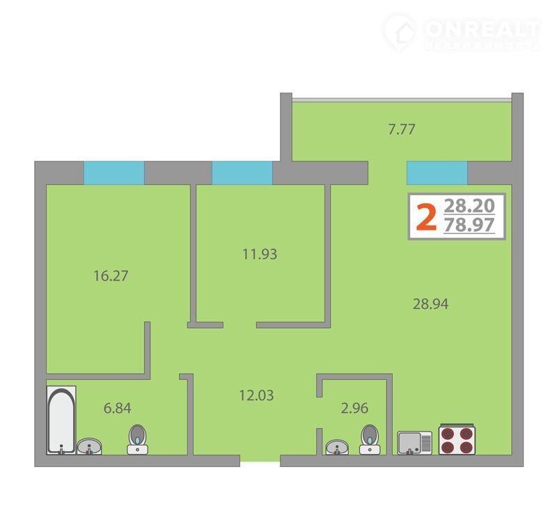 Общая площадь 79.3 м2