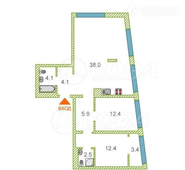 Площадь кухни 38 м2