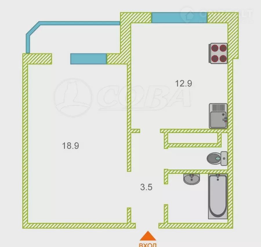 Общая площадь 41.9 м2