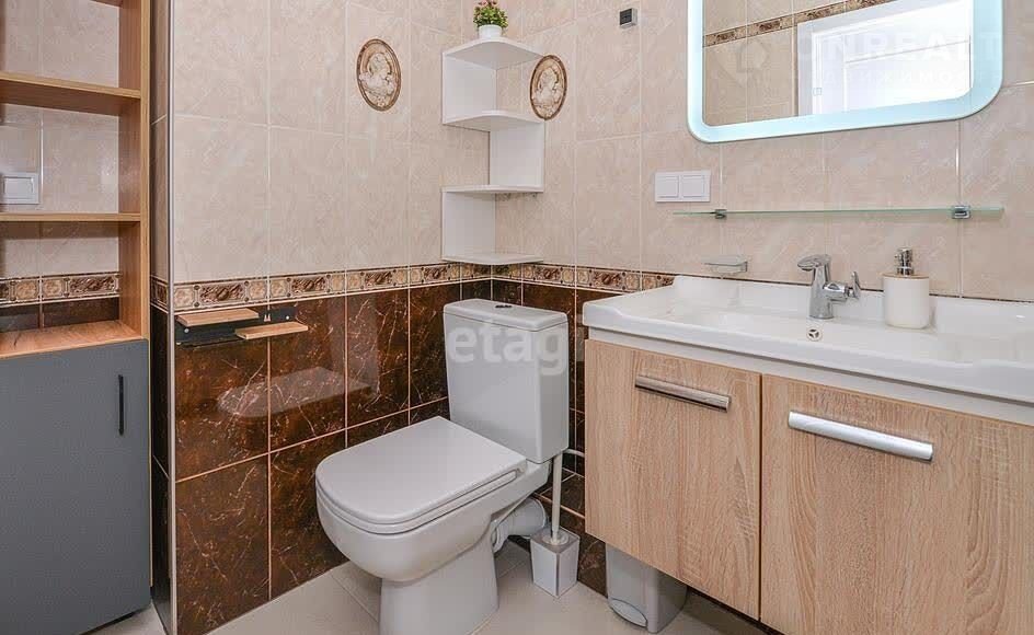 Квартира выполнена в стильном дизайне с использованием только высококачественных и дорогостоящих материалов. Каждая деталь интерьера продумана до мелочей, что создает атмосферу уюта и гармонии. На полу — роскошный кварц-винил, который не только выглядит стильно, но и отличается высокой прочностью и долговечностью. Сантехника и инженерные сети установлены на высоком уровне, что гарантирует надежность и комфорт в повседневной жизни.