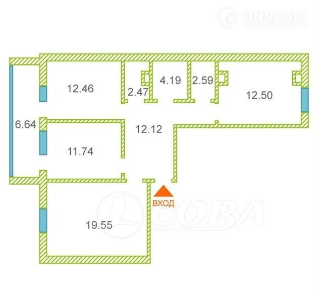 3-комнатная квартира, 77 м2, этаж 15 / 16, на продажу в Тюмени, Кремлёвская улица, 112к1