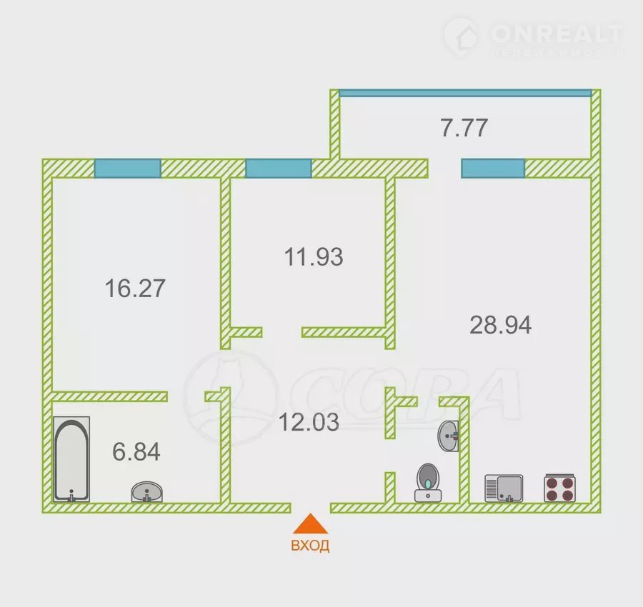 Площадь кухни 28.9 м2