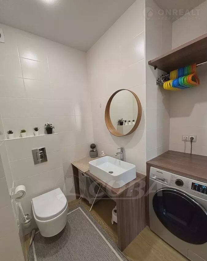 В квартире качественная фурнитура и материалы. Установлены смесители с термостатом, магистральные фильтры воды в санузлах, кондиционер, холодильник, стиральная и посудомоечная машины. На кухне есть измельчитель бытовых отходов, морозильная камера и ПММ.