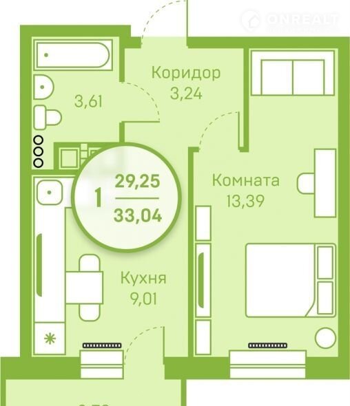 Количество комнат 1