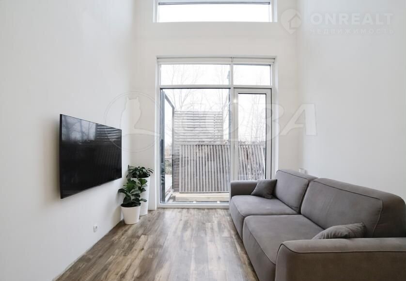 В квартире выполнен ремонт по дизайн-проекту из качественный и современных материалов. На первом этаже квартиры располагаются большая кухня-гостиная с панорамным остеклением высотой 5.8 м, комната, санузел и гардеробная комната. На втором этаже расположены 2 спальни, второй санузел и постирочная комната. При продаже остается встроенный шкаф, кухонный гарнитур с техникой: варочная панель, духовой шкаф, микроволновая печь, холодильник, посудомоечная машина. Остальная мебель и техника по договоренности.