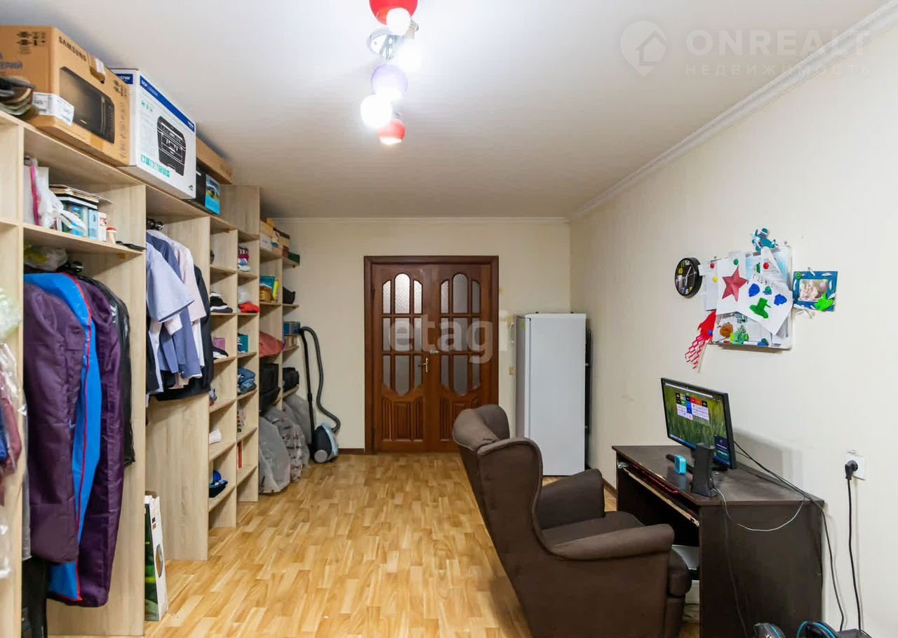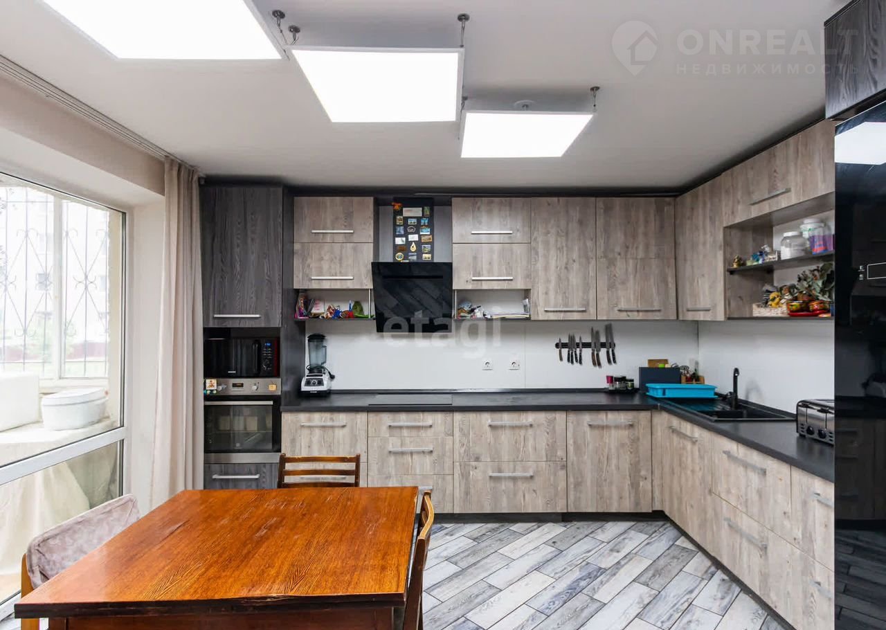 На кухне сделан ремонт, уложен теплый пол, остается большой кухонный гарнитур в две стены. Так же ремонт сделан в маленькой комнате. В одной из комнат сделана большая гардеробная. В остальных комнатах жить можно, они остаются полем для вашей фантазии.
