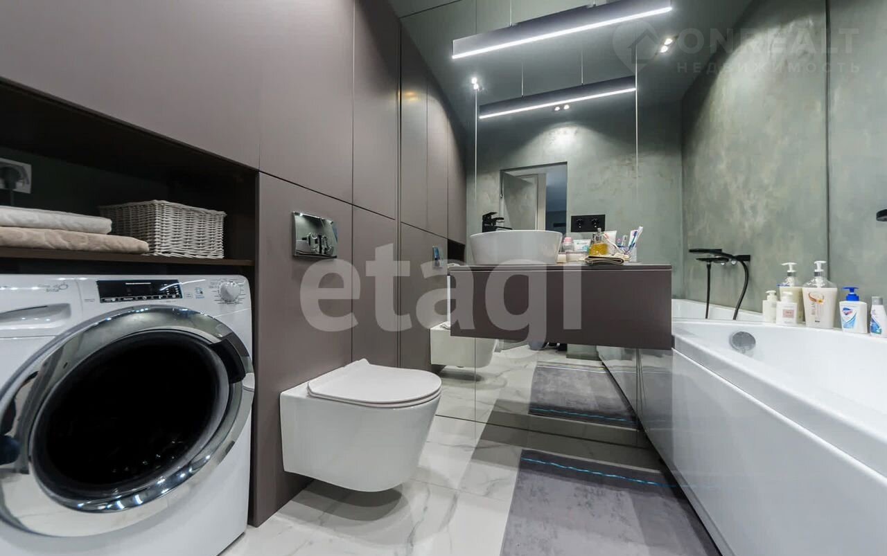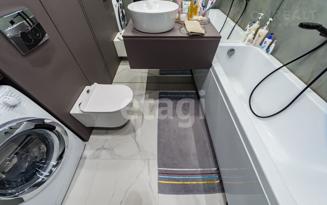 6. Полностью укомплектована ванная комната. Качественная сантехника. Встроенная мебель. Несмотря на глубину всего 45 см очень вместительная, много мест хранения. Стиральная машина.