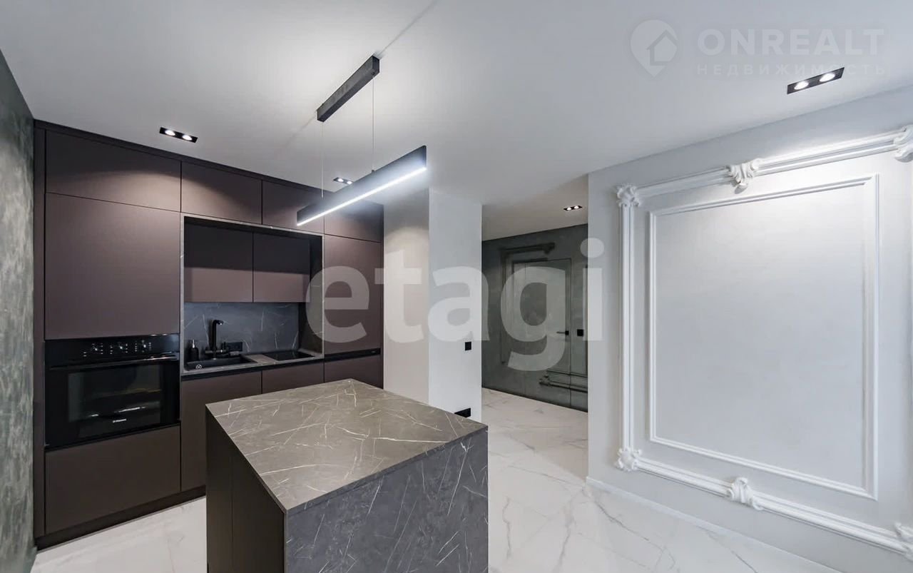 5. Встроенная мебель и кухня от фабрики Хайтэк. Кухня хоть и компактная, но очень вместительная много мест для хранения. Функциональный остров. Фурнитура Вlum. Изготовленная на заказ дорогая тонкая панель, которую использовали в качестве рамки самой кухни и столешницы острова, для придания легкой, стильной формы и не выглядело громоздко.