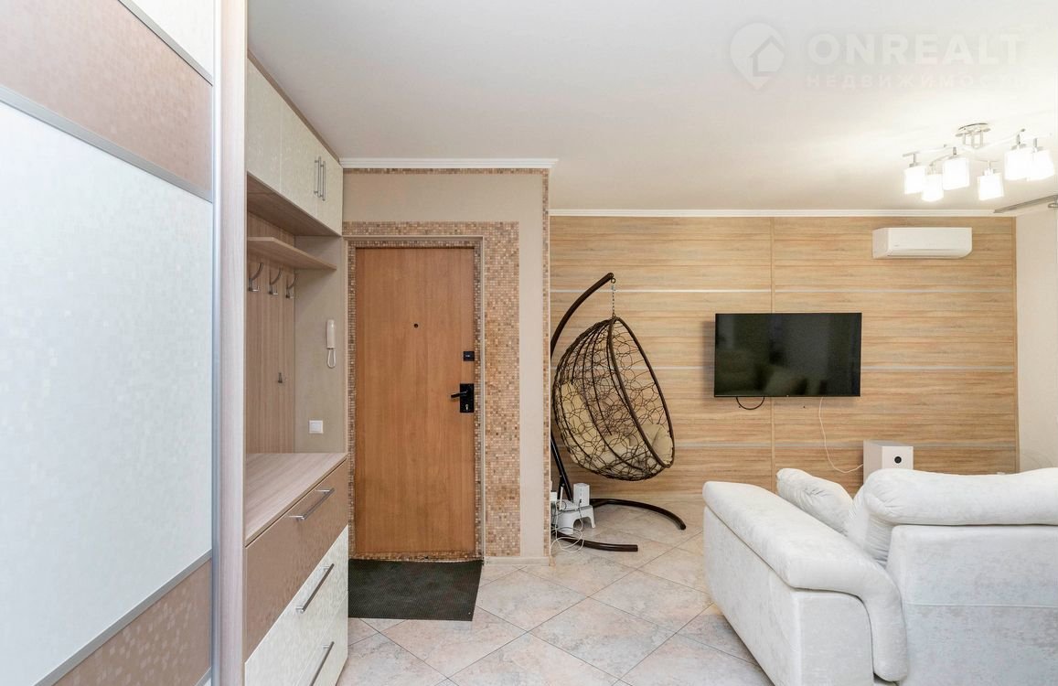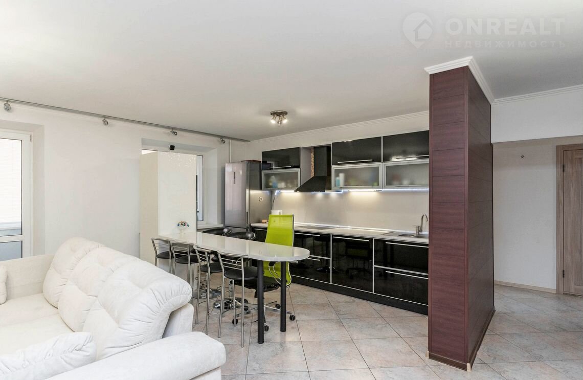 При продаже остается вся необходимая мебель и техника: кухонный гарнитур, варочная панель, духовой шкаф, вытяжка, холодильник, встроенная микроволновая печь, барная стойка и шесть барных стульев, стиральная машина, водонагреватель, кровать с тумбами, комод, гардеробная, шкаф-купе в прихожей и два кондиционера — всё для вашего удобства!