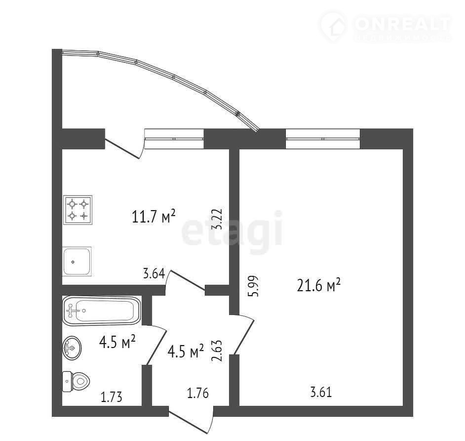 Балкон, лоджия 1 балкон