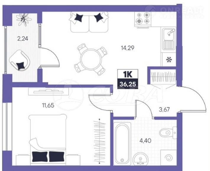 1-комнатная квартира, 36 м2, этаж 3 / 24, на продажу в Тюмени, Полевая улица, 117к1