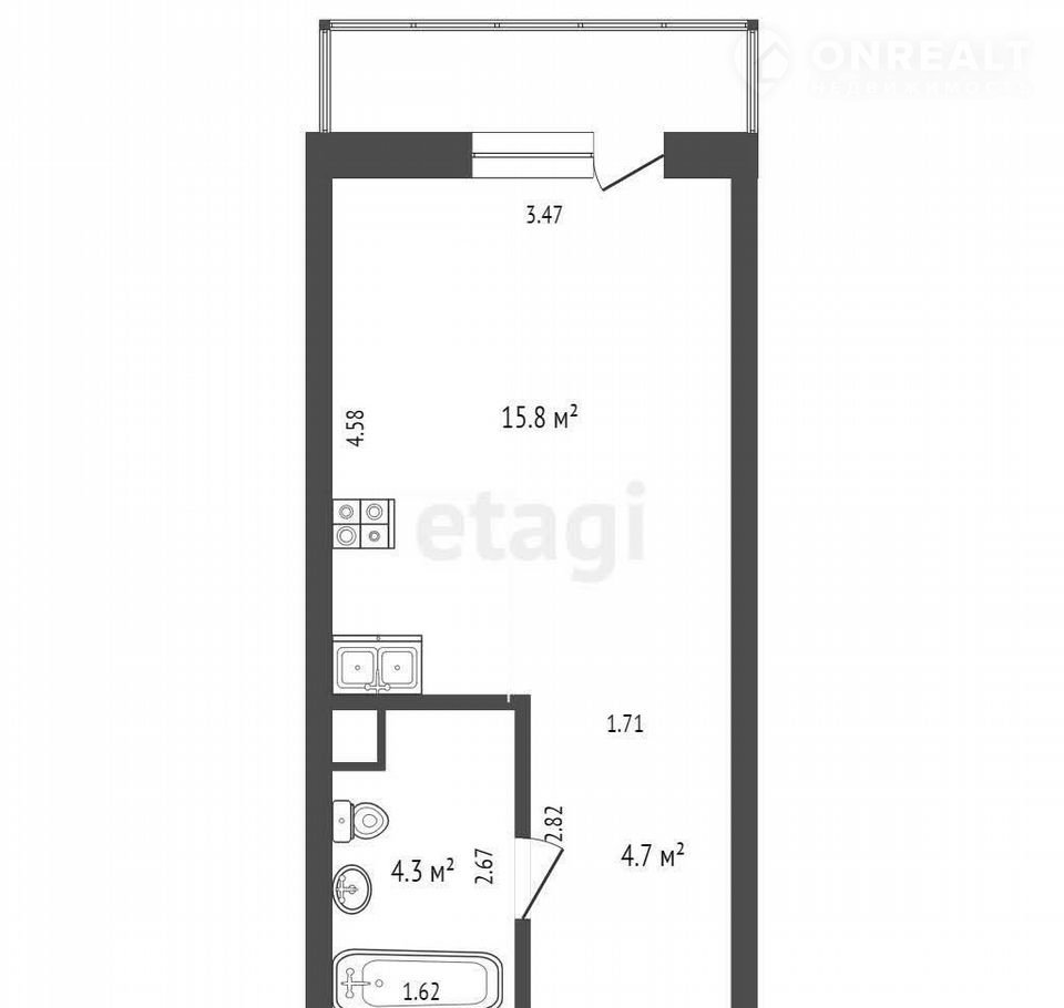 Общая площадь 24.8 м2