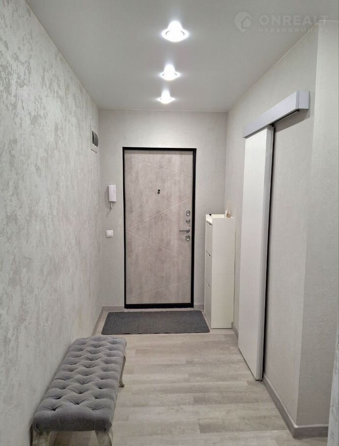 - Натяжные потолки по всей квартире с современными осветительными приборами, создающими атмосферу уюта и стиля.