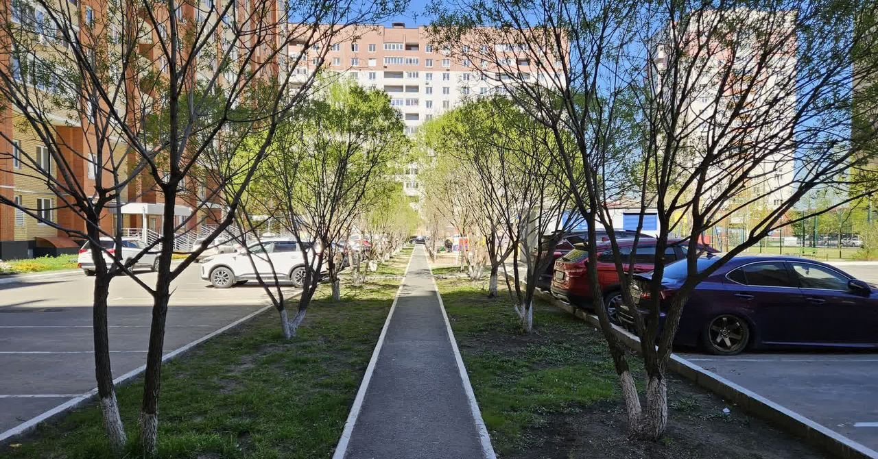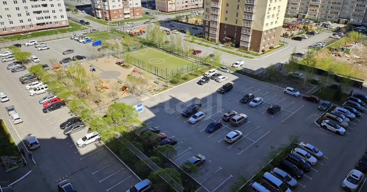 Много мест для парковки, видео наблюдение, рядом остановка общественного транспорта, отличная футбольная площадка.