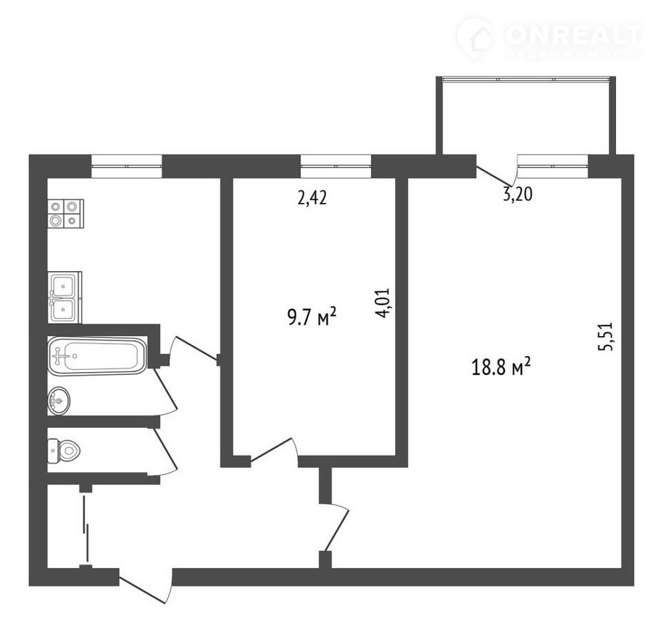 Балкон, лоджия 1 балкон