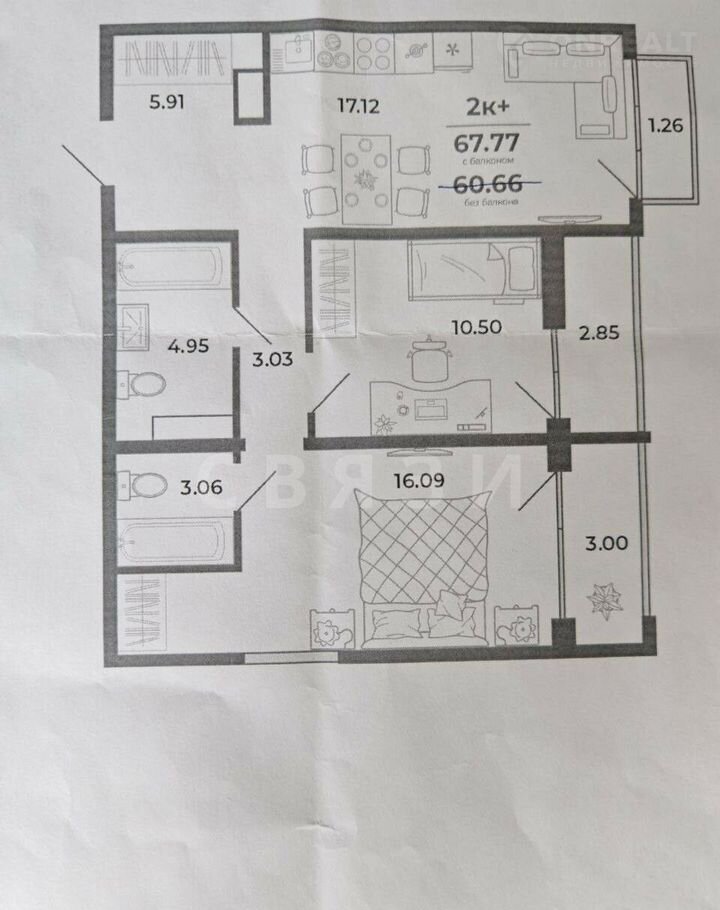 Общая площадь 67.8 м2