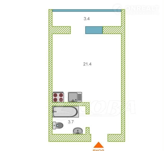 Квартира студия, 25.3 м2, этаж 12 / 17, на продажу в Тюмени, Полевая улица, 109к1