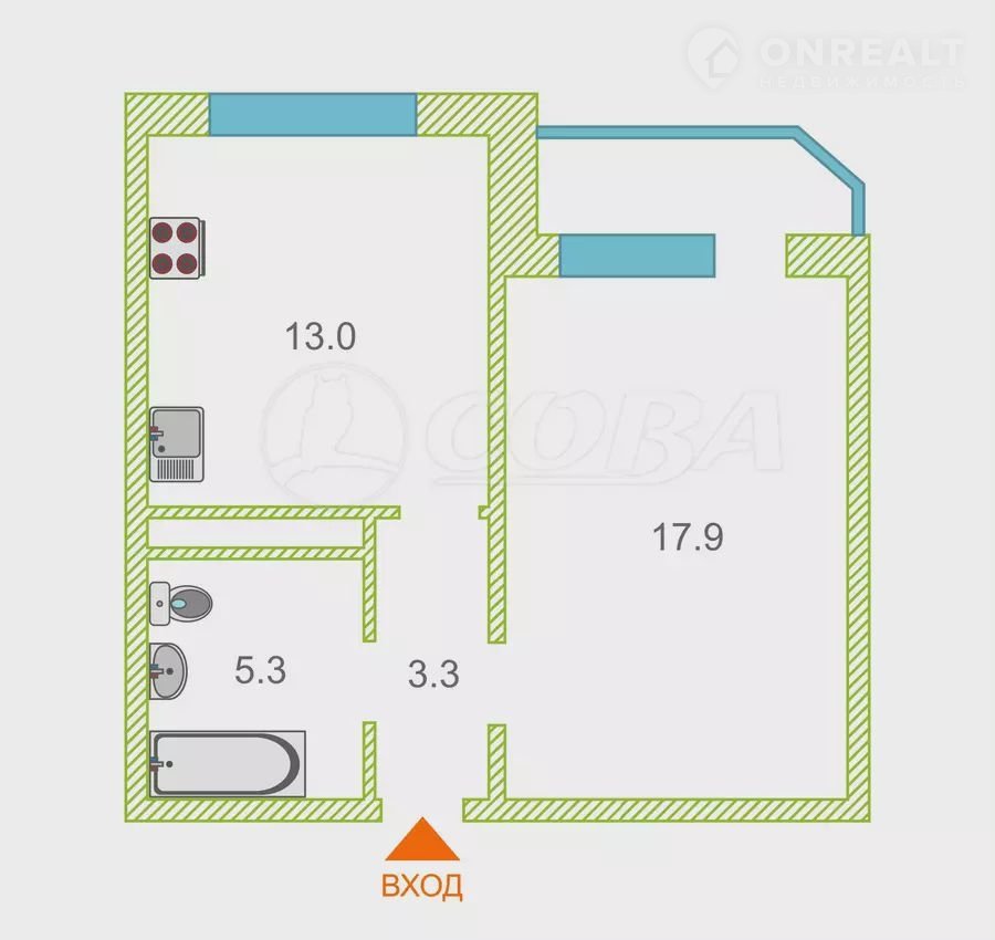 Общая площадь 39.5 м2