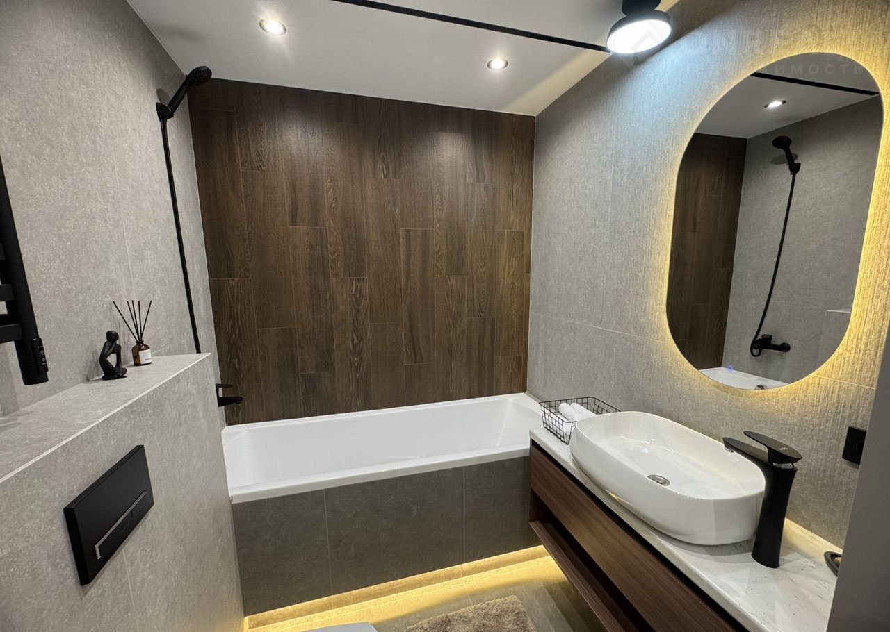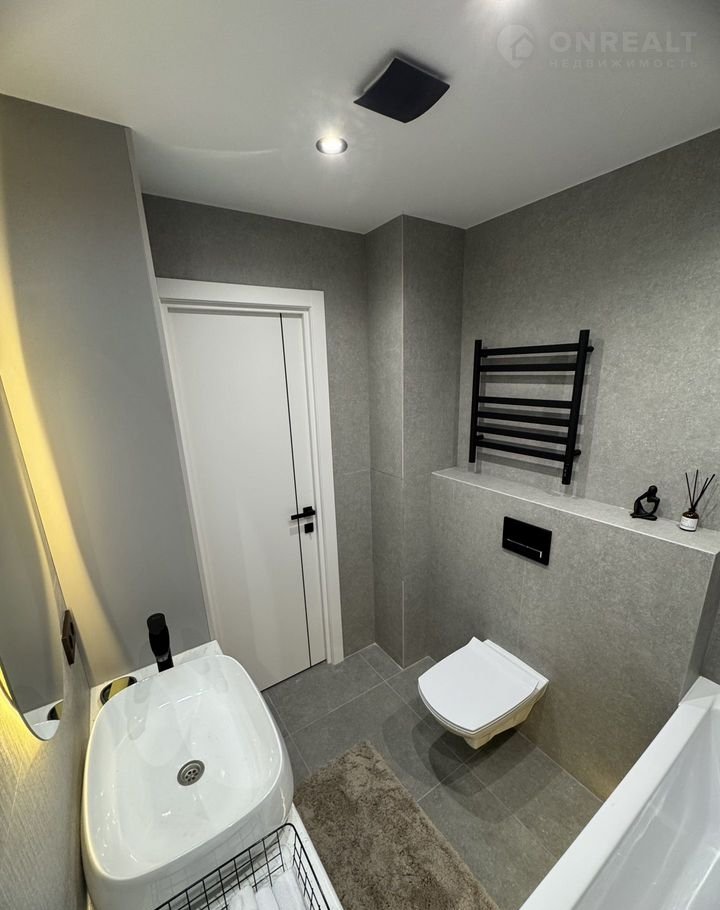 - в сан узле крупнoфоpмaтнaя плитка;
