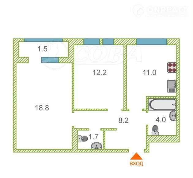 Общая площадь 56 м2