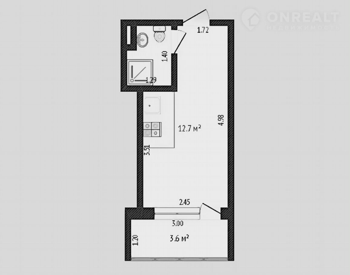 Общая площадь 12.7 м2