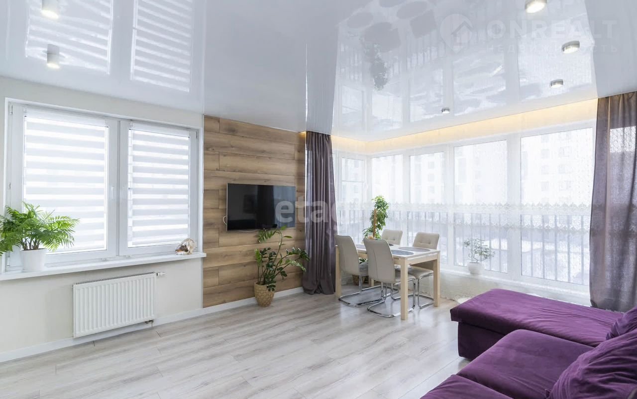 с панорамным остеклением, что придает гостиной много света.При продаже остается кухонный гарнитур со встроенной техникой( посудомоечная машина, варочная панель),холодильник, кондиционер. Дом класса "комфорт": - комплексная застройка, ЖК"Видный" стал нарицательным именем для целого микрорайона Тюмени, закрытый двор, видеонаблюдение, ландшафтный дизайн по всей территории комплекса, дизайнерское оформление мест общего пользования, современное оснащение домов: полная телеметрия, вам больше не нужно заботится о передаче показаний самостоятельно; - установлены счетчики индивидуального потребления тепла и радиаторы с терморегуляторами, сейф-дверь с замком и шумоизоляцией.Окна выходят на две стороны. Район с отличной развитой и инфраструктурой в шаговой доступности новая современная школа, буквально во дворе, детский сад, поликлиника, развивающие детские центры, досуговые центры и фитнес-центры, магазины, гипермаркеты, кафе и рестораны, медицинские учреждения, аптеки и другие объекты соцкультбыта. Приезжайте и своими глазами посмотрите эту красоту!