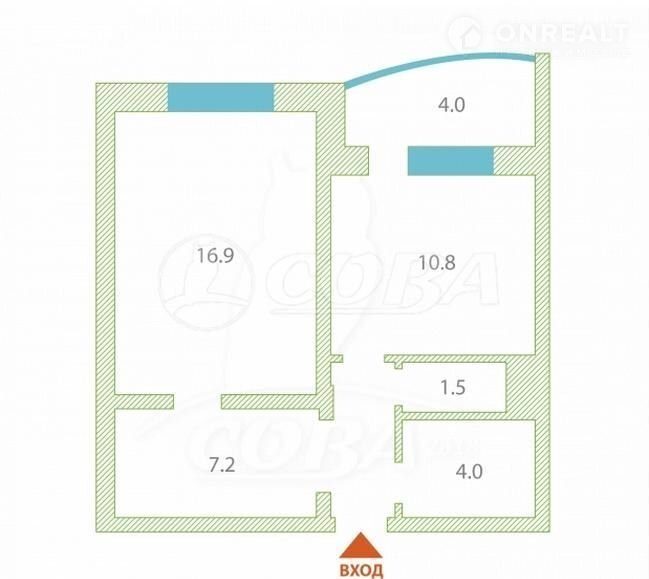 Общая площадь 42.9 м2