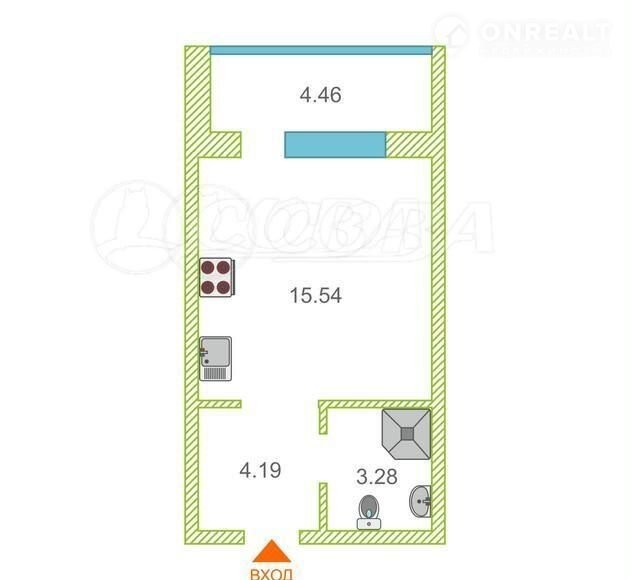 Квартира студия, 25 м2, этаж 4 / 4, на продажу в Тюмени, улица Игоря Комиссарова, 17