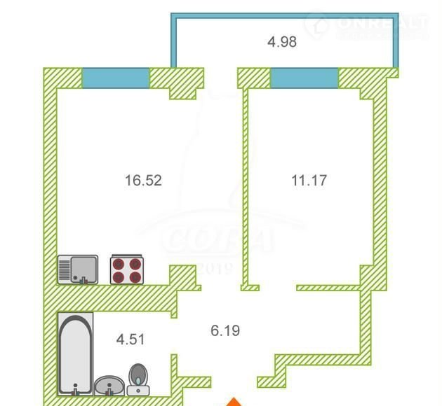 Общая площадь 38.3 м2