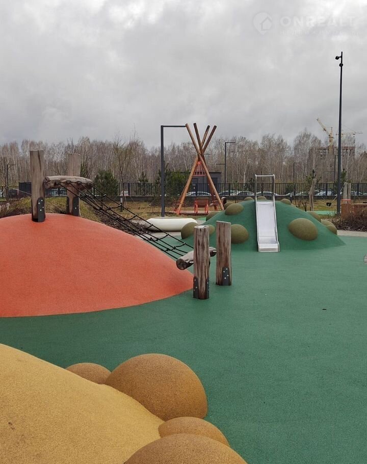 Закрытый двор без машин с современными детскими площадками — это идеальное пространство для игр и активного времяпрепровождения ваших детей.
