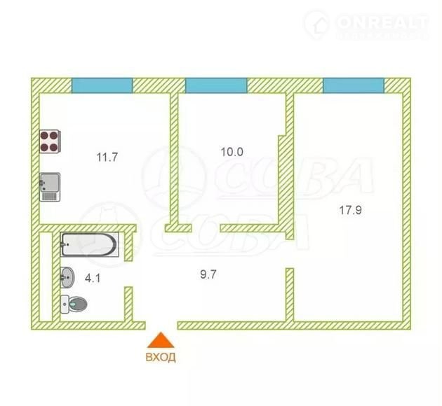 Общая площадь 54 м2