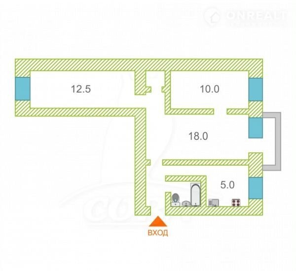Общая площадь 58 м2