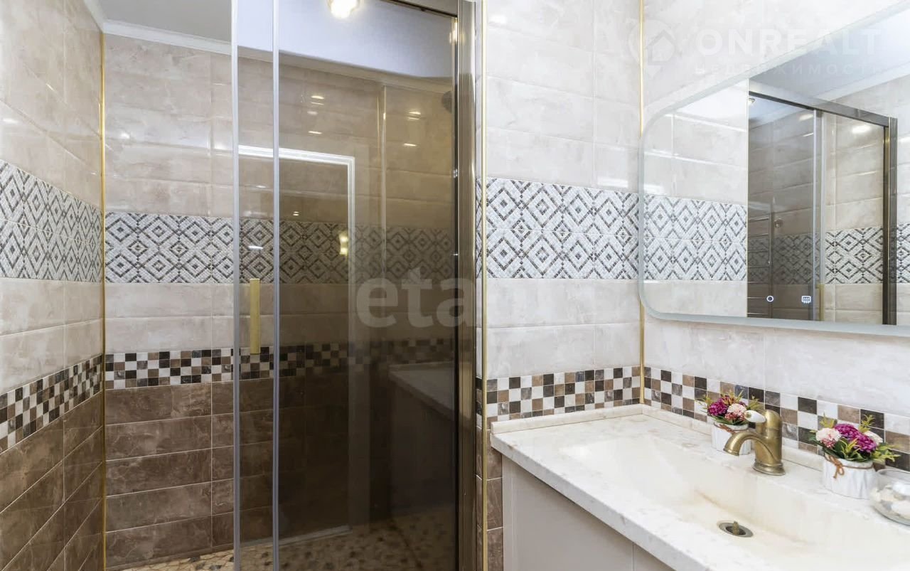 Продуманная система хранения – это одно из главных преимуществ этой квартиры. Шкафы-купе, искусно интегрированные в интерьер, позволяют разместить все необходимое, не загромождая пространство. Каменная столешница в кухонном гарнитуре и каменная раковина в душевой – это элементы роскоши, которые подчеркивают внимание к деталям. Пол в душевой, оформленный галькой, создает ощущение близости к природе.