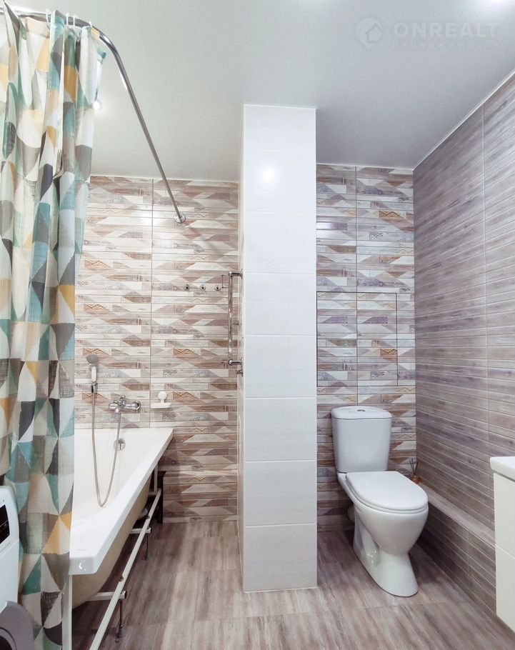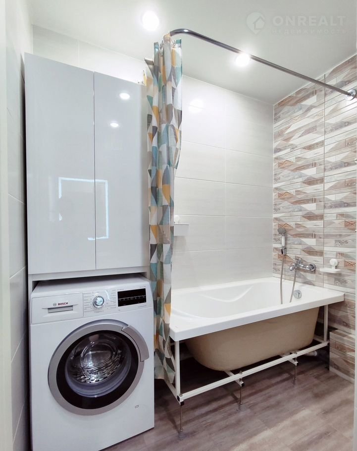 Санузел совмещенный по проекту, стены и пол выложены качественной кафельной плиткой, установлена мебель для ванной комнаты, а также новая сантехника, стиральная машинка марки "Воsсh".