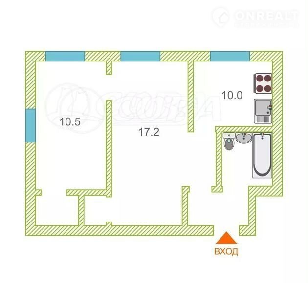 2-комнатная квартира, 44.8 м2, этаж 8 / 8, на продажу в Тюмени, улица Щорса, 7А