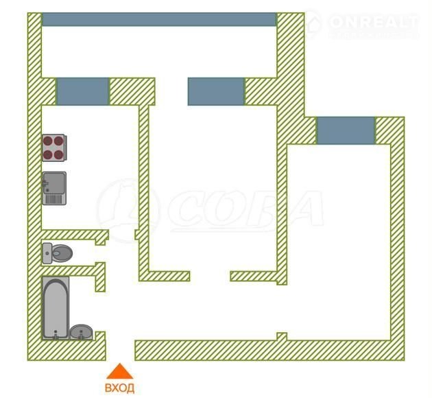 2-комнатная квартира, 47.9 м2, этаж 3 / 9, на продажу в Тюмени, Станционная улица, 38Б