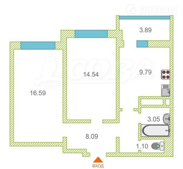 Общая площадь 53.5 м2