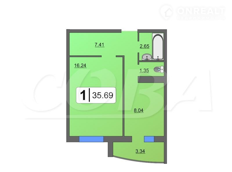 Общая площадь 35.6 м2