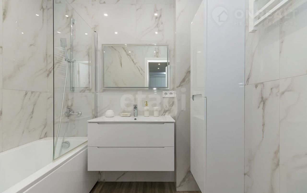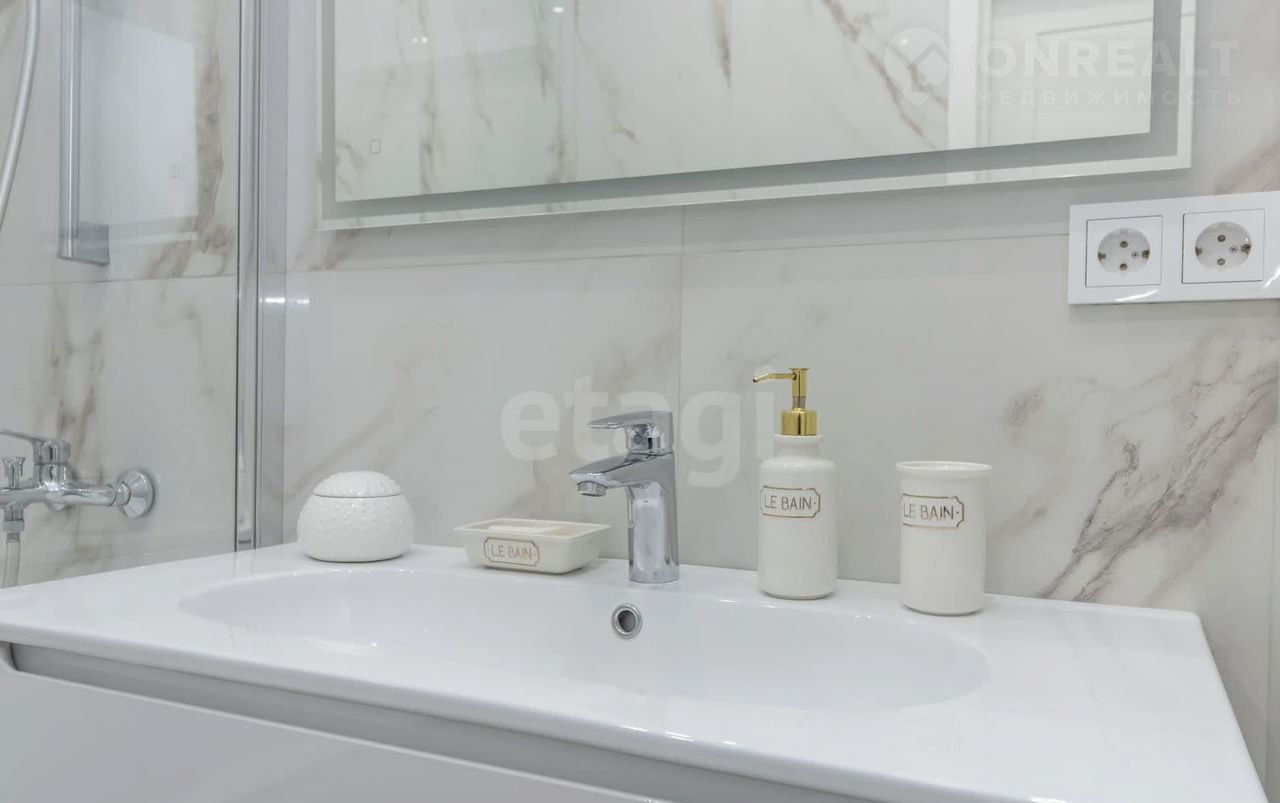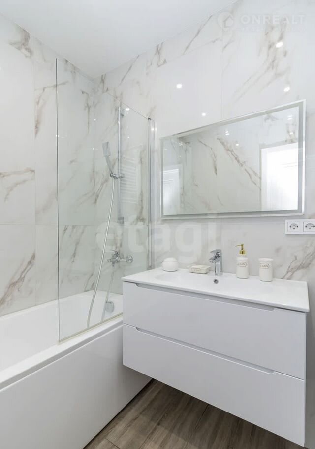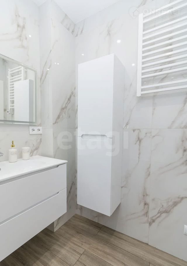 В ванной комнате полы с подогревом, керамогранит итальянский Установлена дополнительная защита от затопления.