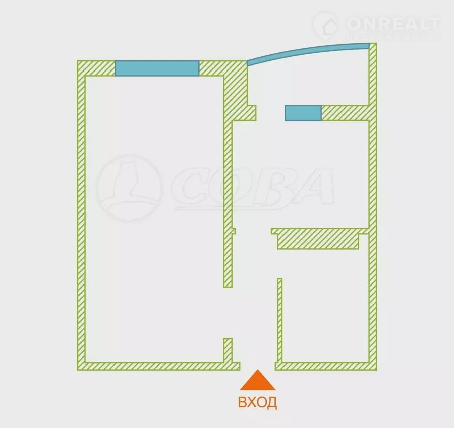 Общая площадь 43.5 м2