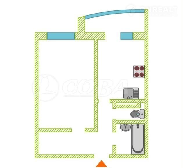 1-комнатная квартира, 35.5 м2, этаж 7 / 10, на продажу в Тюмени, Беловежская улица, 21