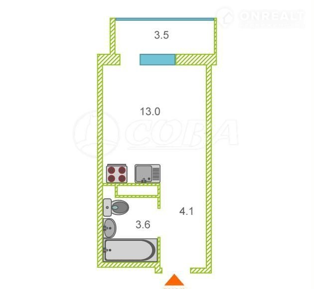 Квартира студия, 20.1 м2, этаж 1 / 15, на продажу в Тюмени, улица Новосёлов, 109