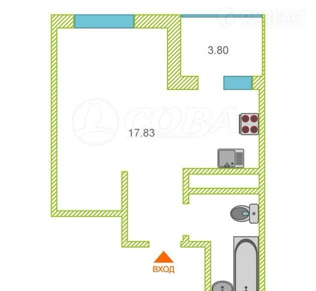 Квартира студия, 25 м2, этаж 14 / 22, на продажу в Тюмени, Дамбовская улица, 27к1