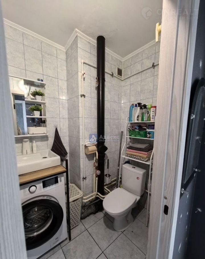 В ванной комнате сантехника новая, остаются стеллаж над унитазом, полка над стиральной машиной (сверху можно поставить сушильную машину), шторки, полки.
