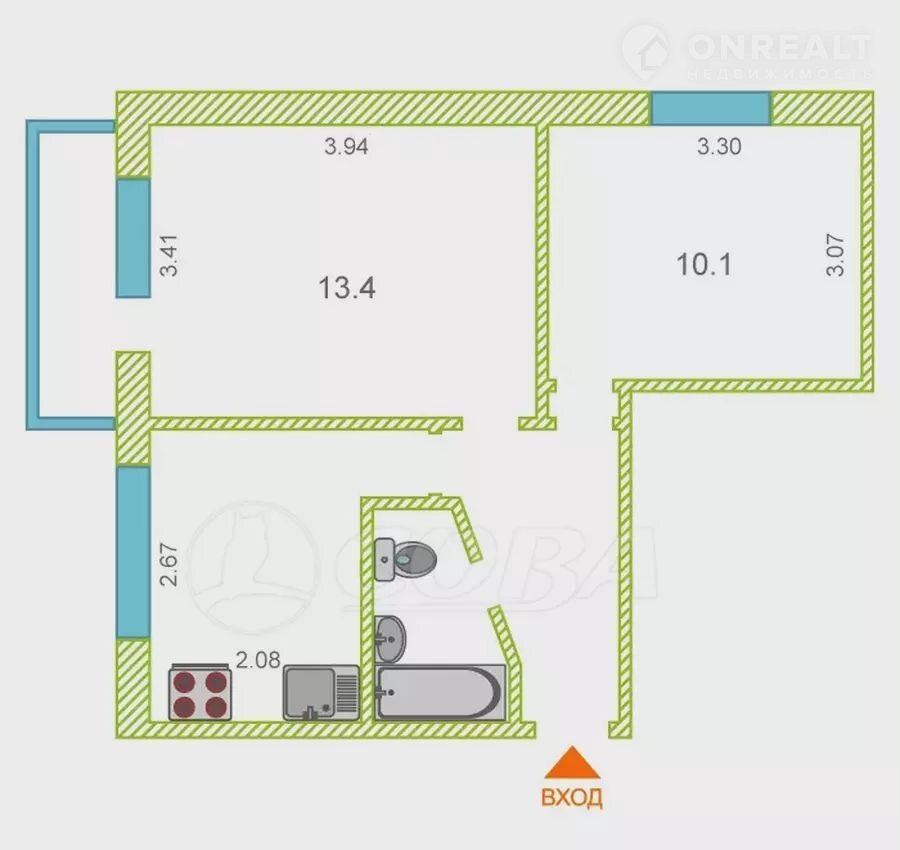 Общая площадь 40 м2