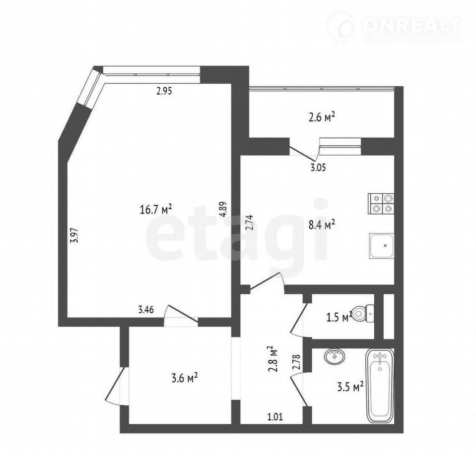 Балкон, лоджия 1 балкон