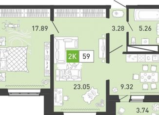 2-комнатная квартира на продажу, 60.7 м2, улица Константина Посьета, 6