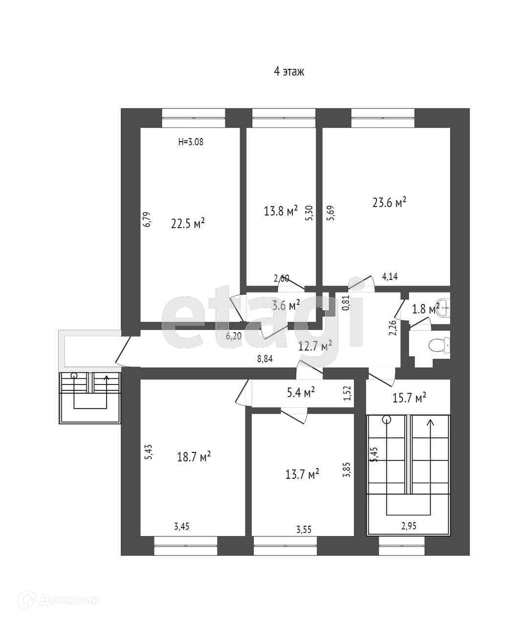 Санузел и выход на пожарную лестницу на каждом этаже.