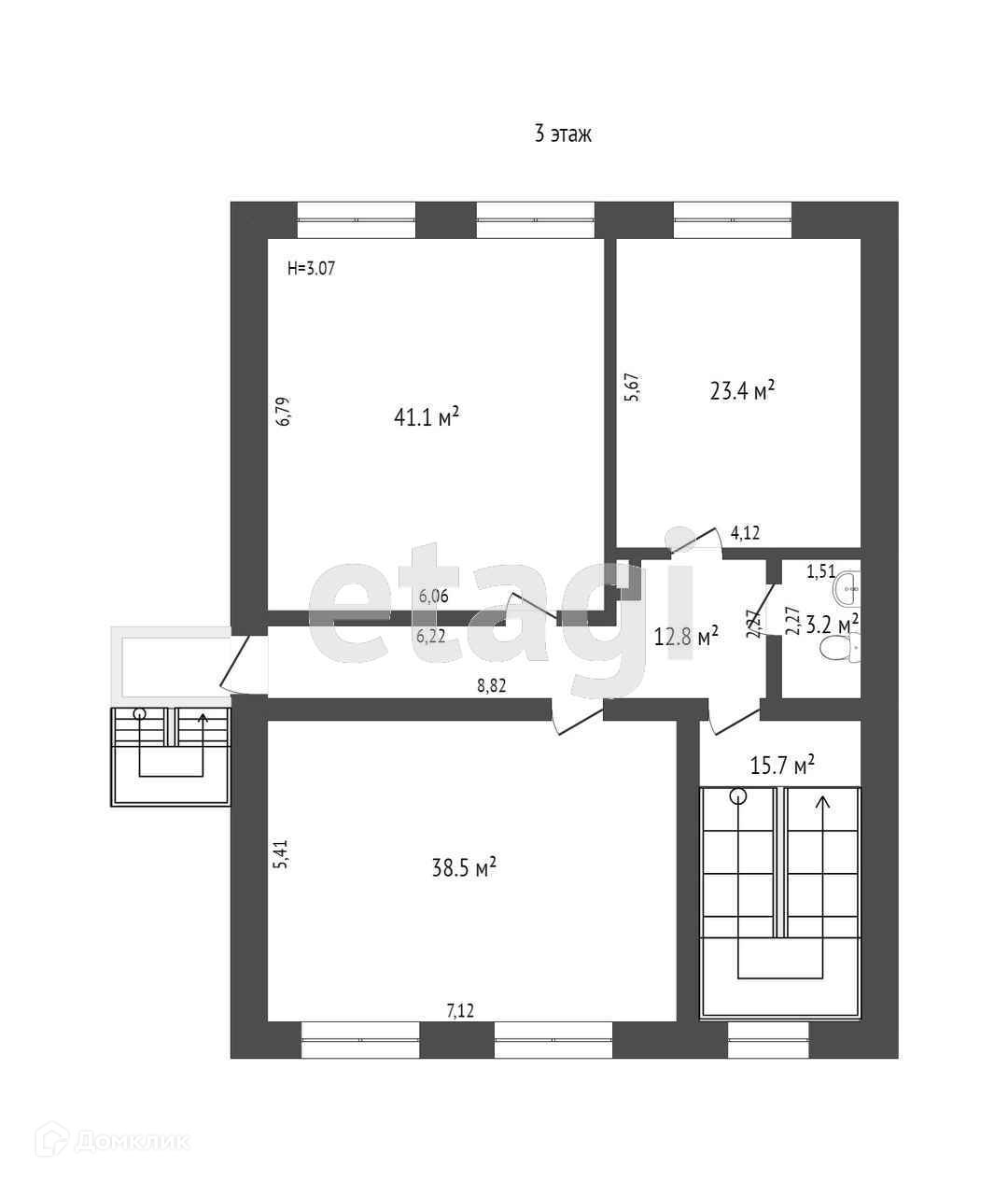 3 этаж состоит из 3-х офисов: 38 м2, 41 м2 и 24 м2, коридора и сан.узла.
