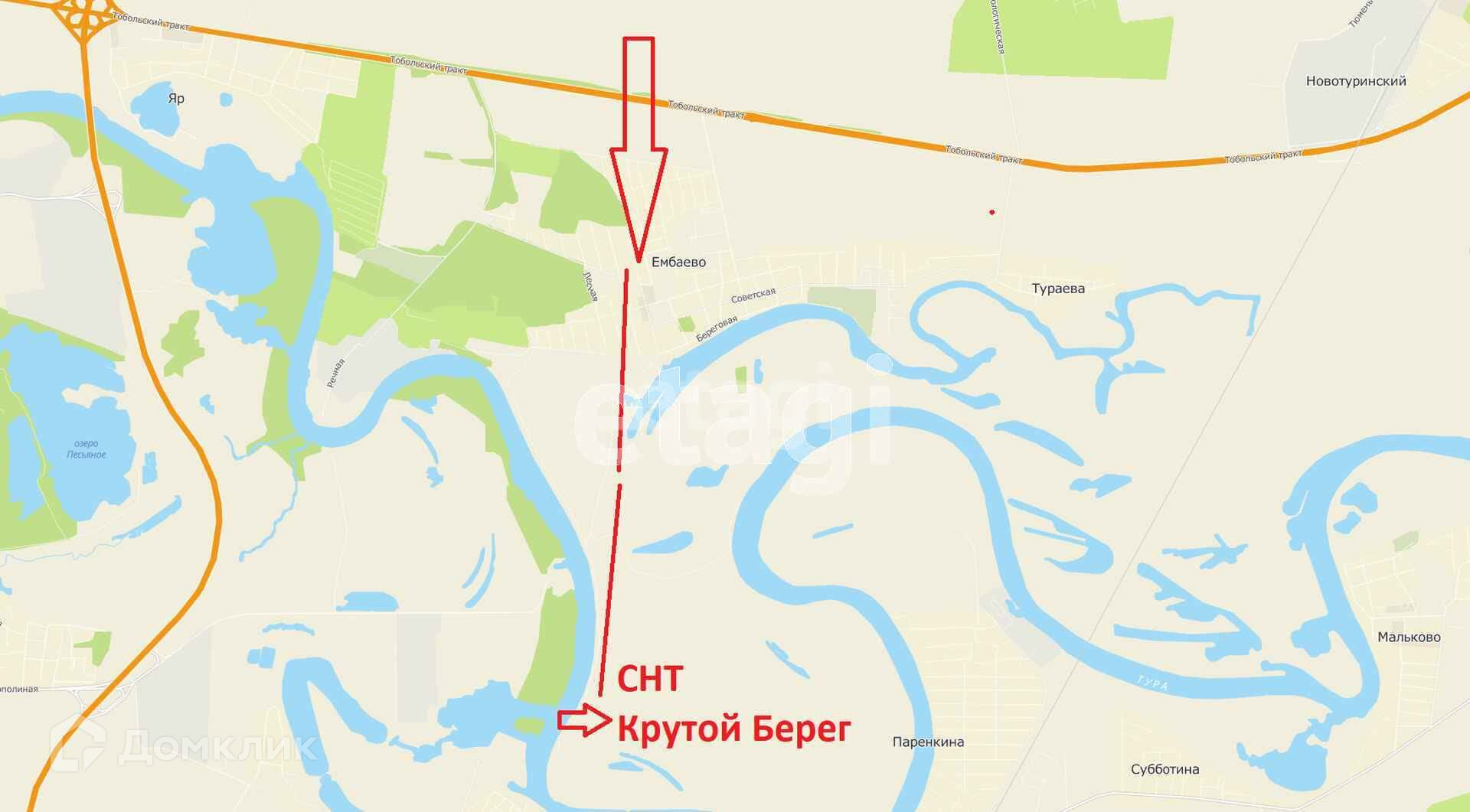 Заезд осуществляется через Тобольский тракт, через село Ембаево.